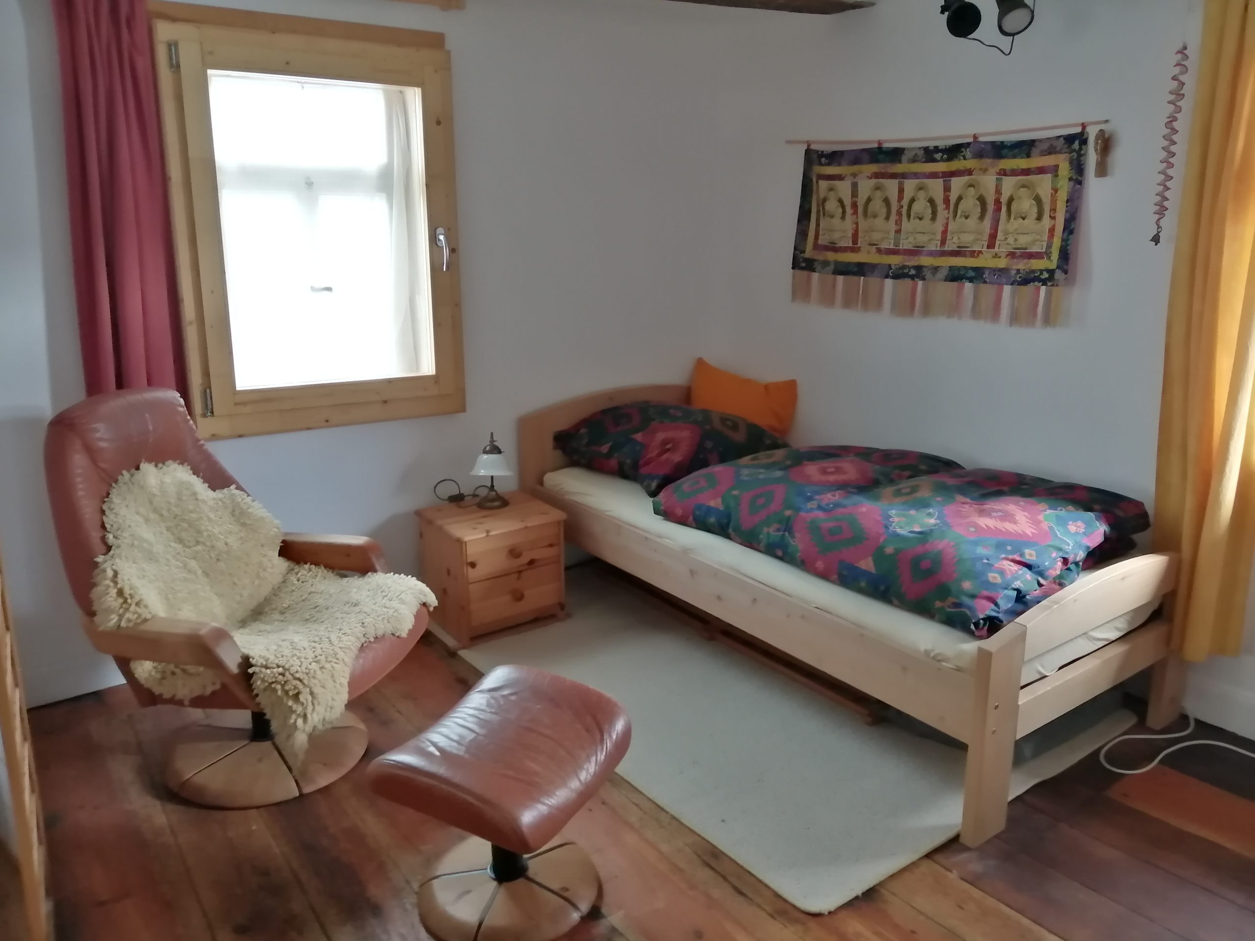 Das Zimmer liegt im ersten Stock und hat zwei getrennte Betten. Eine Zusatzmatratze kann ich anbieten. Das Bad befindet sich direkt neben dem Zimmer und steht zur alleinigen Nutzung zur Verfügung. Des Weiteren ist die Küchenmitbenutzung möglich.