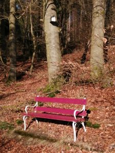 In unruhigen Zeiten ist es hilfreich, einen Augenblick stille zu stehen und sich seiner eigenen Mitte bewußt zu werden. Hier eine Bank oberhalb von Gönnern.